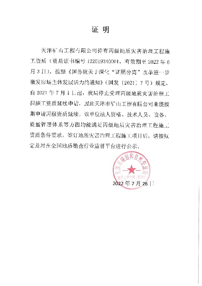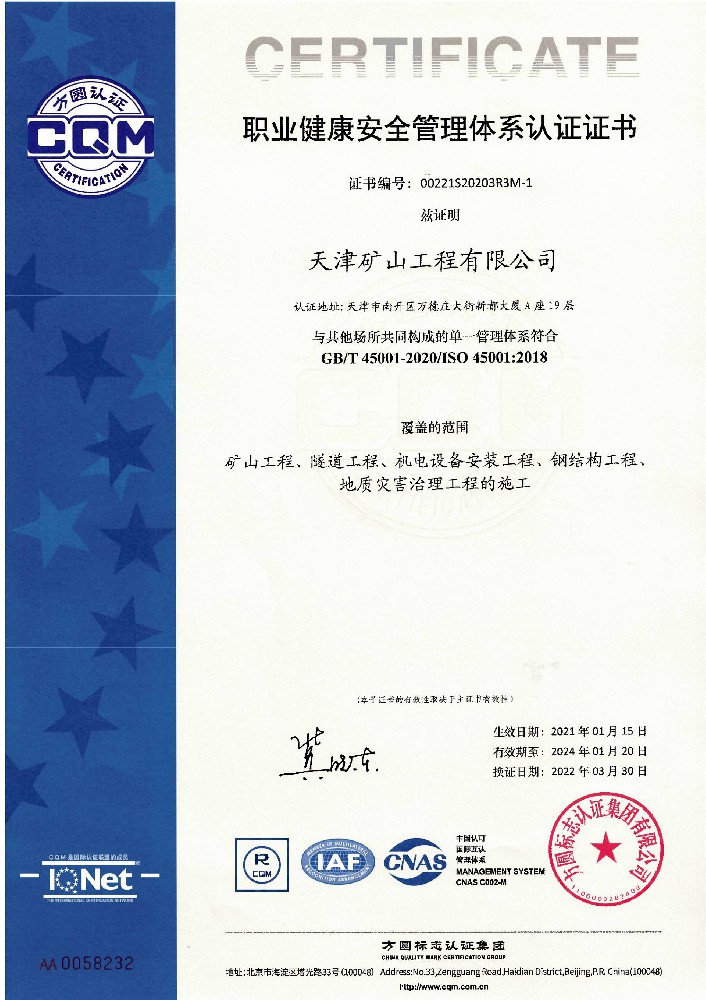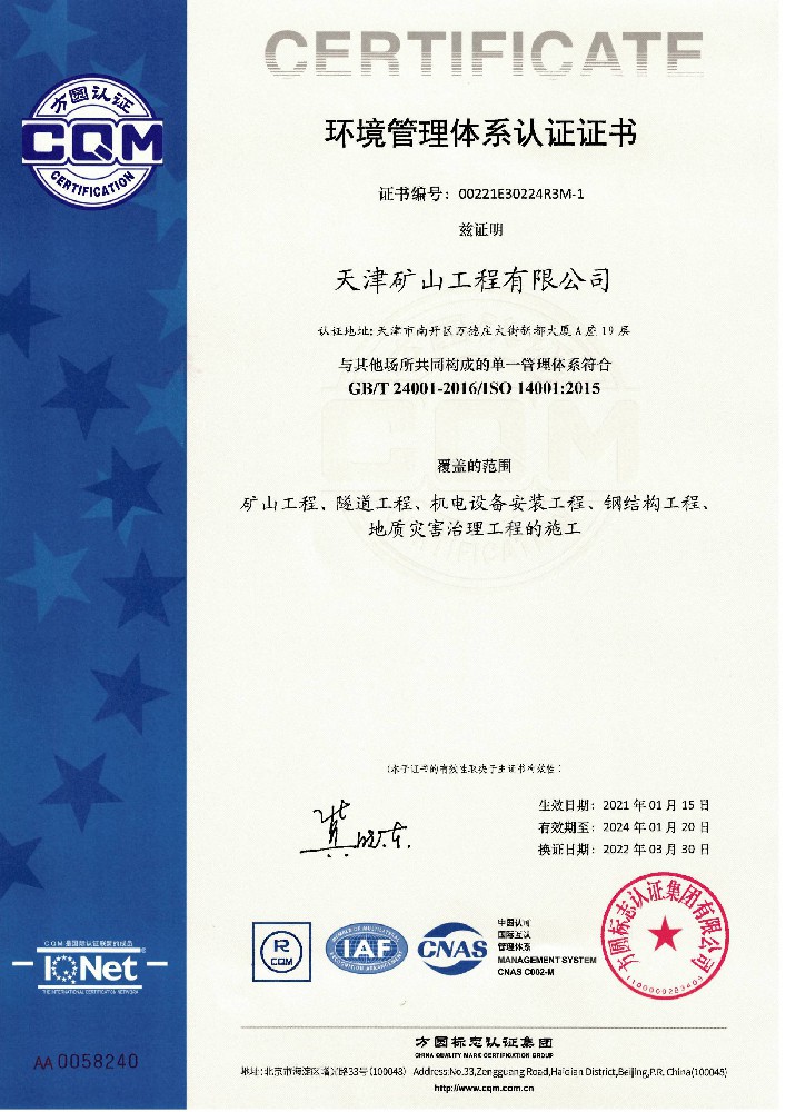 天津礦山工程有限公司(以下簡(jiǎn)稱公司)始建于1965年,隸屬中國(guó)建材集團(tuán)有限公司,是從事礦山總承包、礦山開(kāi)采運(yùn)營(yíng)、礦山設(shè)計(jì)與咨詢、土石方爆破、生態(tài)恢復(fù)治理、鋼結(jié)構(gòu)制作安裝、機(jī)電設(shè)備安裝以及工程測(cè)量的專業(yè)化礦山施工企業(yè)和礦山開(kāi)采運(yùn)營(yíng)總承包服務(wù)商。具備礦山總承包和爆破雙一級(jí)資質(zhì)。 公司始建于1965年,總部位于天津市···